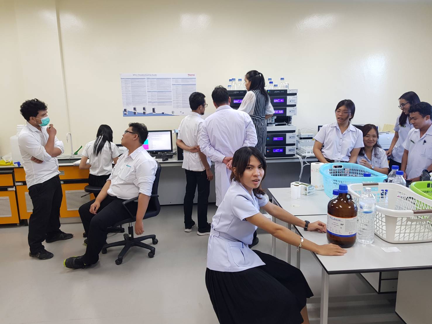 สถาบันวิจัยวิทยาการสุขภาพ ให้บริการห้องปฏิบัติการเครื่องมือพิเศษเพื่อการวิจัยทางการแพทย์ (UPLC) แก่นักศึกษาสำนักวิชาเภสัชศาสตร์ เพื่อสนับสนุนการเรียนการสอน รายวิชา PHD-533 หัวข้อ Stability of Phenobarbital exteporaneous suspension