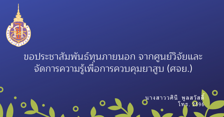ประชาสัมพันธ์ประชาสัมพันธ์ทุนภายนอก จากศูนย์วิจัยและจัดการความรู้เพื่อการควบคุมยาสูบ (ศจย.)