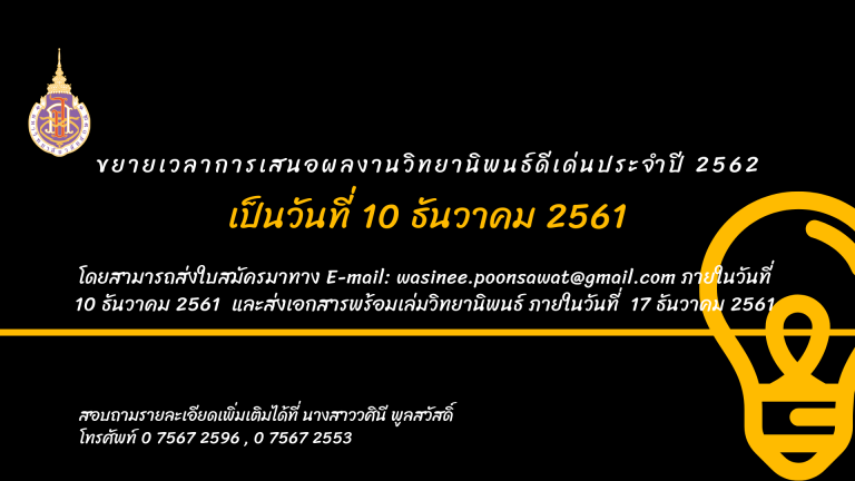 ขยายเวลาการเสนอผลงานวิทยานิพนธ์ดีเด่น ประจำปี 2562